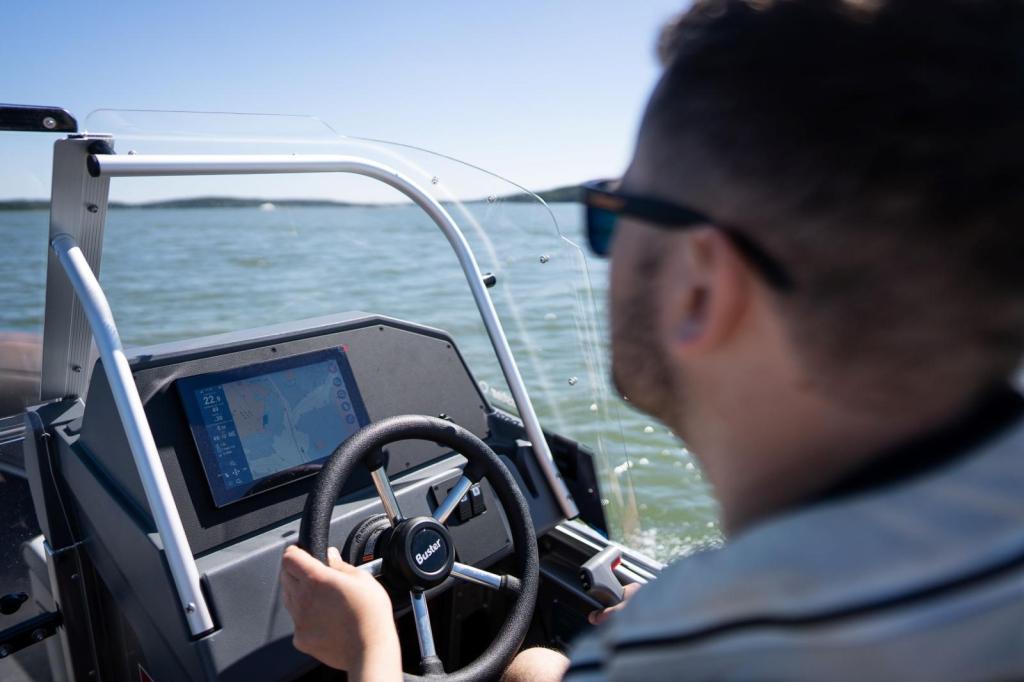 Mångsidiga Buster L2 kommer med bl.a. räcken i rostfritt stål och ett snyggt svart kapell. Buster designar alla sina båtar så att de ska täcka användarens behov på bästa möjliga sätt. Buster L2 är den mest mångsidiga båten i sin storleksklass, perfekt för avkopplande båtturer, fiske eller som pendlar till sommarstället. Oavsett användningsområdet så bidrar båtens utmärkta sjöegenskaper till en känsla av säkerhet även under mer utmanande förhållanden. Standardutrustningen inkluderar pulpeter med stadiga vindrutor, som erbjuder bra skydd för passagerarna på aktertoften. Bakom de dubbla pulpeterna sitter tre passagerare bekvämt, och dessa ryms även vid behov under kapellet (erbjuds som tillval). Den löstagbara aktertoften och 45 liters sittboxar erbjuder ett praktiskt förvaringsutrymme och gör att båten lätt kan anpassas efter olika behov. Buster L2 kan kompletteras med ytterligare förvaringsutrymme genom att lägga till en extra spöbox i fören. Under kapellgaraget finns dessutom ett eget förvaringsutrymme för löstagbara topplanternan då den inte är i bruk. Som tillbehör kan båten utrustas med Premium Edition-paketet, då levereras den med avancerade och unika Buster Q infotainmentsystemet.