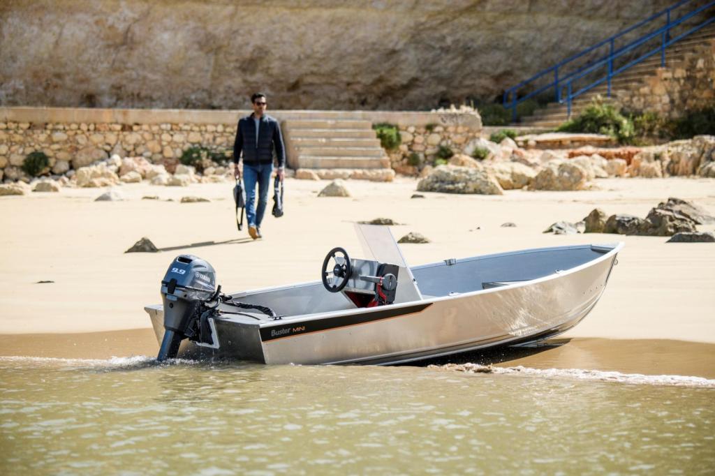 Buster Mini Sport är ett praktexempel på det ”lilla båtlivet” det behöver inte kosta skjortan för att vara roligt. Mini Sport baserar sig på Buster Mini skrovet – men med styrkonsol. Den tillåtna maxeffekten på 10 hästkrafter lockar fram den sportiga sidan av denna lilla båt. Med styrkonsol lämpar sig Mini Sport utomordentligt som förbindelsebåt för korta sträckor i skyddade vatten, eller som tonåringens första egna, “riktiga” motorbåt. Med Yamahas 9,9 hästare toppar du lätt 20 knop. Att manövrera och köra den rattförsedda båten är enkelt och underhållande.