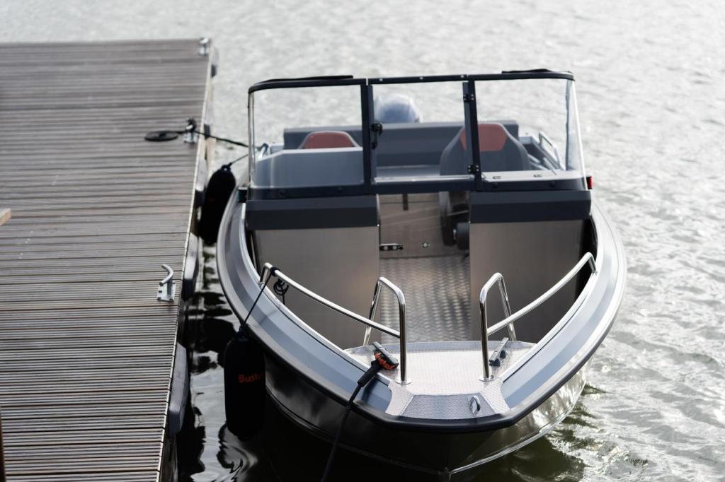 Buster X är en mångsidig all-round båt som kan anpassas efter olika behov. Detta har gjort modellen till en av de bestående favoriterna i Busters produktfamilj. Buster X:s rejäla vindruta med en fast mellandörr ger ett bra vindskydd för passagerarna i sittbrunnen, samtidigt som den svarta vindruteramen ger båten ett modernt och häftigt utseende. Räckena kommer i rostfritt stål och durken i aluminium, vilket gör båten snygg men framför allt praktisk. Förutom detta kan du enkelt skräddarsy din båt att passa just dina behov, genom att välja bland ett brett sortiment av tillbehör. På så sätt kan du vara säker på att båten är precis rätt för dina ändamål.